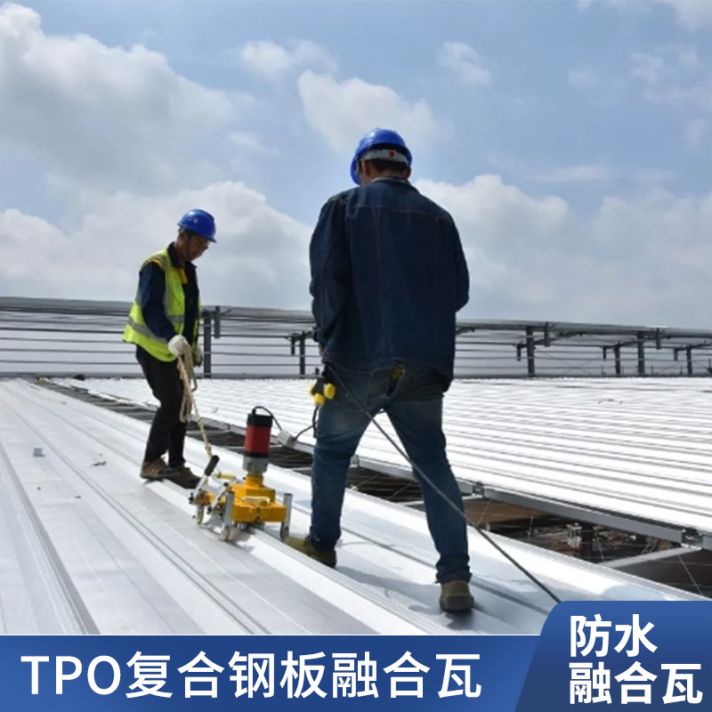 TPO/PVC鋼塑復合防水瓦以鋼板為基板,表面貼覆具有防水防腐功能的TPO/PVC卷材(熱塑性聚烯烴類防水卷材),是一款防水防腐屋面建筑材料。TPO/PVC鋼塑復合防水瓦主要特點就是在各類環(huán)境下不易生銹不易漏水,使用熱風焊接進行相連,覆蓋全部裸露的縫隙,在使用過程中可以達到蓄水不滲透的效果,防水效果好,同時還有較好的抗風揭性能和耐老化性