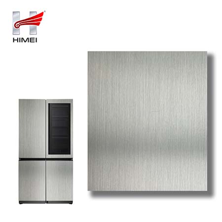 家電用覆膜鋼板,就是鋼板的基材上面覆了一層PET膜/PVC膜,然后通過覆合貼覆而成,主要應用在各類家電外殼裝飾上,例如冰箱、洗衣機、電飯煲等外殼部件。覆膜是一種物理工藝,一層膜一層鋼板經過高溫高壓壓合而成。