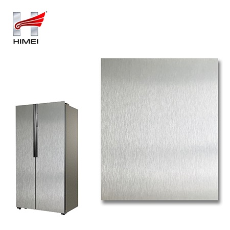 家電用覆膜鋼板,就是鋼板的基材上面覆了一層PET膜/PVC膜,然后通過覆合貼覆而成,主要應(yīng)用在各類家電外殼裝飾上,例如冰箱、洗衣機(jī)、電飯煲等外殼部件。覆膜是一種物理工藝,一層膜一層鋼板經(jīng)過高溫高壓壓合而成。