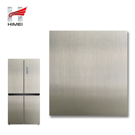 家電用覆膜鋼板,就是鋼板的基材上面覆了一層PET膜/PVC膜,然后通過覆合貼覆而成,主要應用在各類家電外殼裝飾上,例如冰箱、洗衣機、電飯煲等外殼部件。覆膜是一種物理工藝,一層膜一層鋼板經過高溫高壓壓合而成。