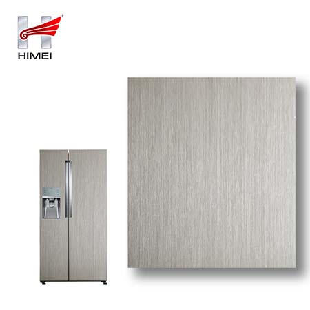 家電用覆膜鋼板,就是鋼板的基材上面覆了一層PET膜/PVC膜,然后通過覆合貼覆而成,主要應用在各類家電外殼裝飾上,例如冰箱、洗衣機、電飯煲等外殼部件。覆膜是一種物理工藝,一層膜一層鋼板經過高溫高壓壓合而成。