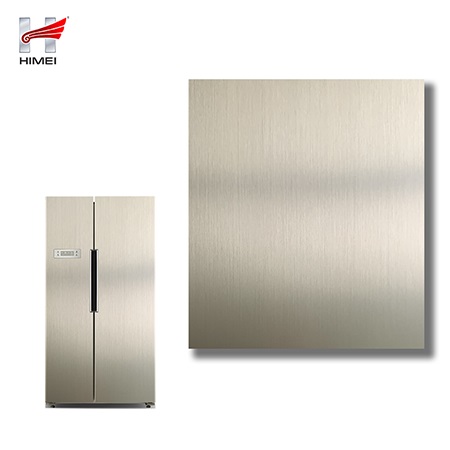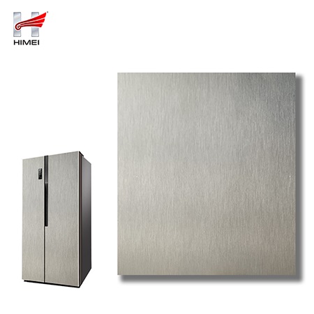 家電用覆膜鋼板,就是鋼板的基材上面覆了一層PET膜/PVC膜,然后通過覆合貼覆而成,主要應用在各類家電外殼裝飾上,例如冰箱、洗衣機、電飯煲等外殼部件。覆膜是一種物理工藝,一層膜一層鋼板經過高溫高壓壓合而成。