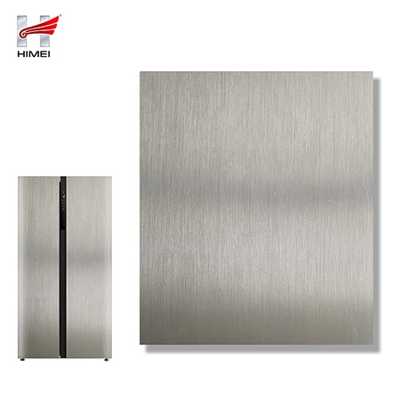 家電用覆膜鋼板,就是鋼板的基材上面覆了一層PET膜/PVC膜,然后通過覆合貼覆而成,主要應用在各類家電外殼裝飾上,例如冰箱、洗衣機、電飯煲等外殼部件。覆膜是一種物理工藝,一層膜一層鋼板經過高溫高壓壓合而成。