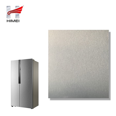 家電用覆膜鋼板,就是鋼板的基材上面覆了一層PET膜/PVC膜,然后通過覆合貼覆而成,主要應用在各類家電外殼裝飾上,例如冰箱、洗衣機、電飯煲等外殼部件。覆膜是一種物理工藝,一層膜一層鋼板經過高溫高壓壓合而成。
