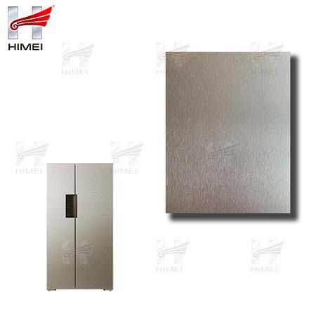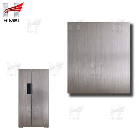 家電用覆膜鋼板,就是鋼板的基材上面覆了一層PET膜/PVC膜,然后通過覆合貼覆而成,主要應(yīng)用在各類家電外殼裝飾上,例如冰箱、洗衣機(jī)、電飯煲等外殼部件。覆膜是一種物理工藝,一層膜一層鋼板經(jīng)過高溫高壓壓合而成。